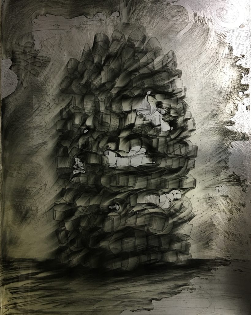 Heat Exchange, pencil on paper, 38 x 50 inches