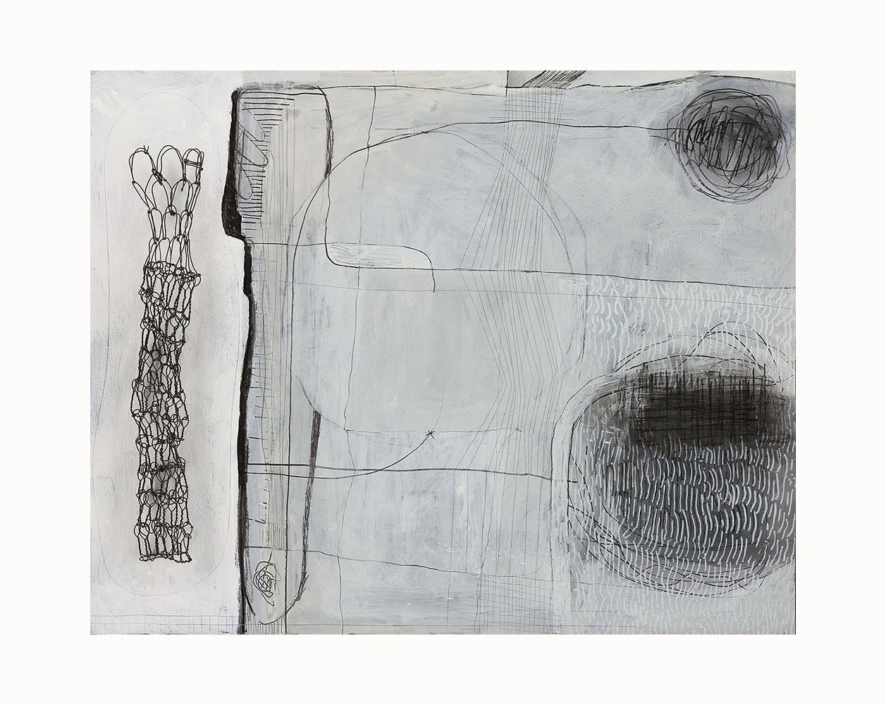 Vinyl paint, steel wire, pencil, tracing paper, matte medium on paper