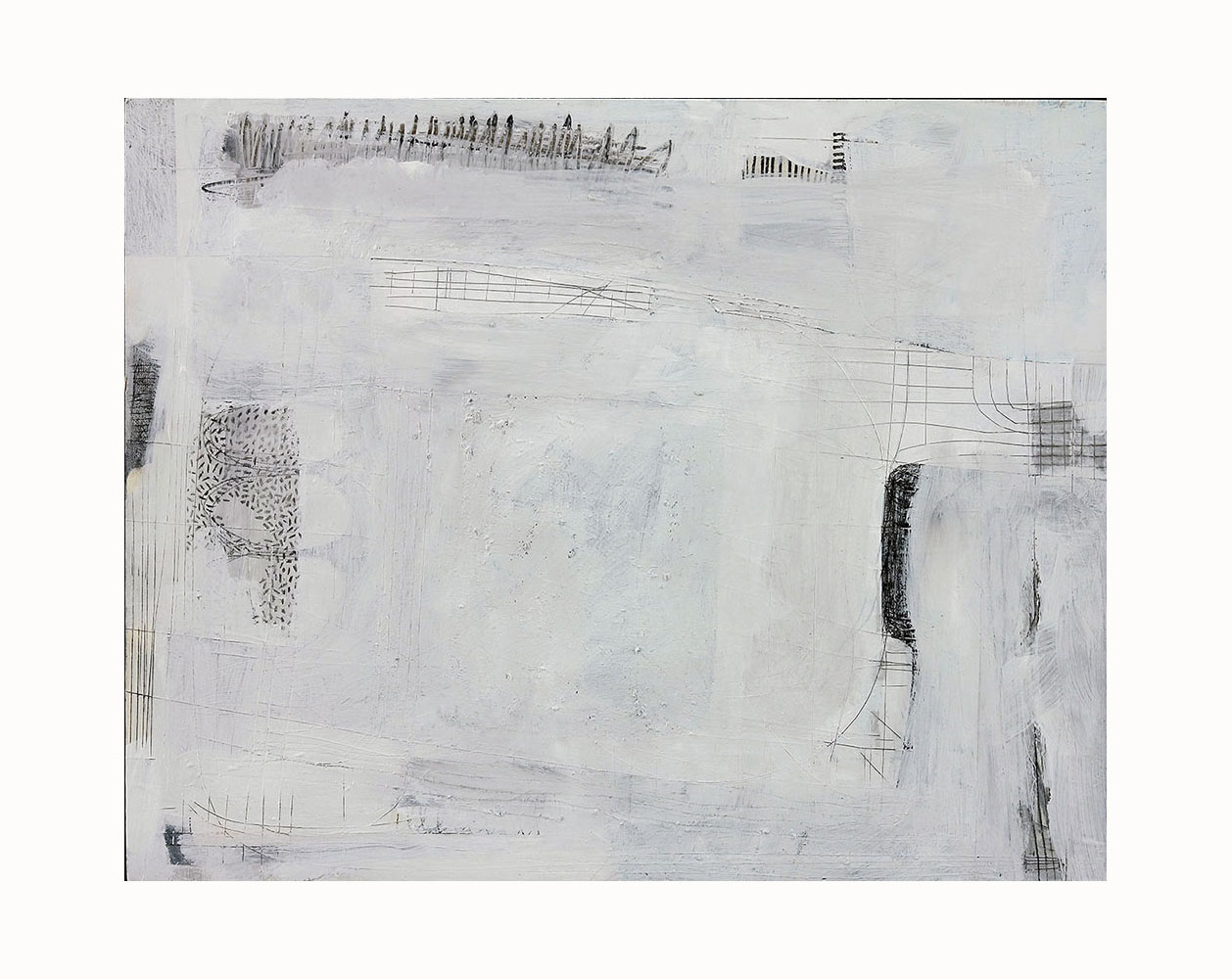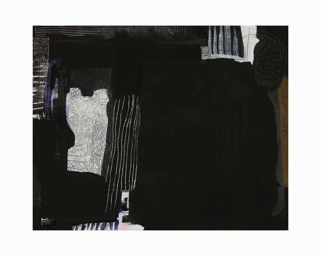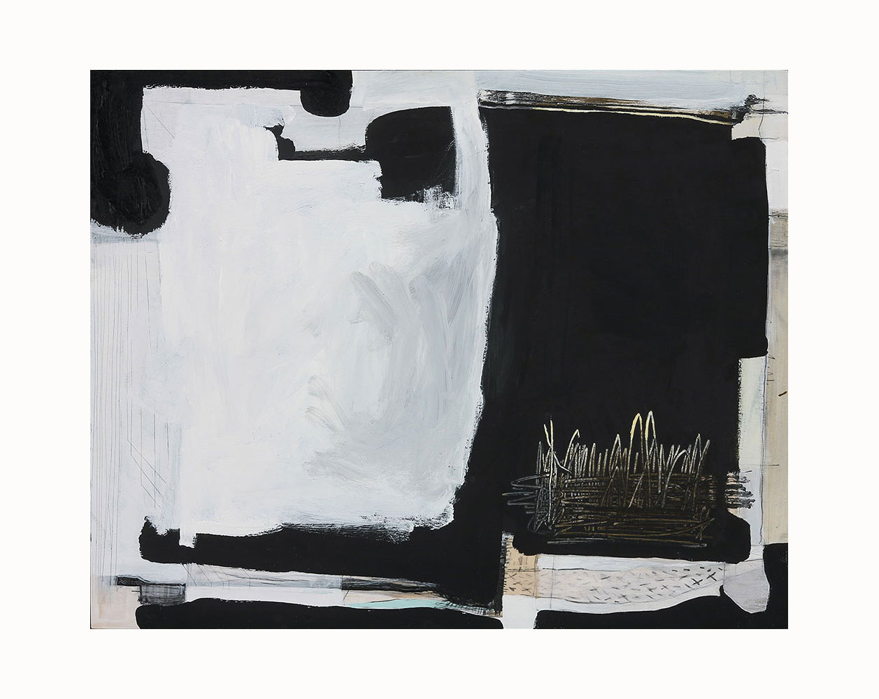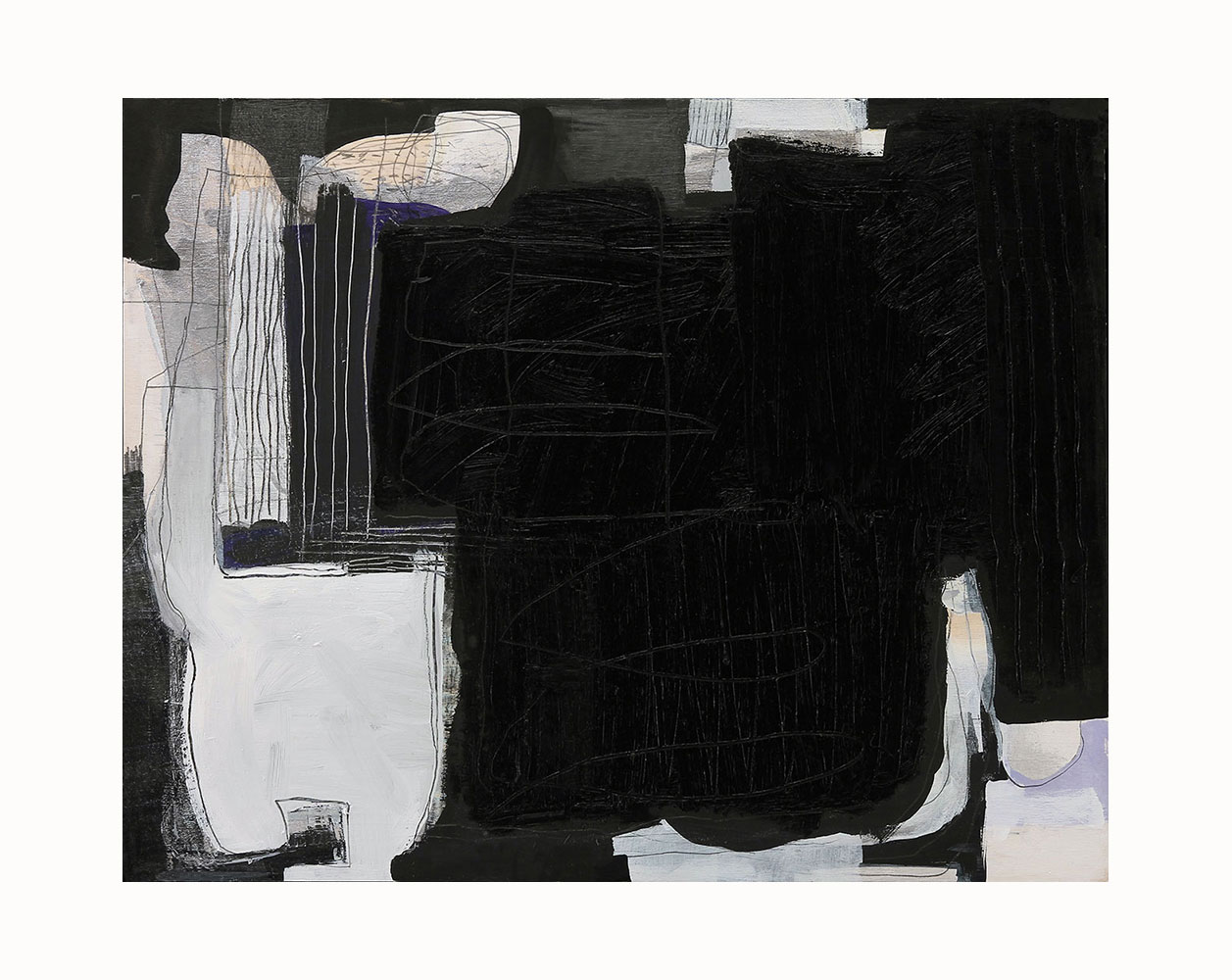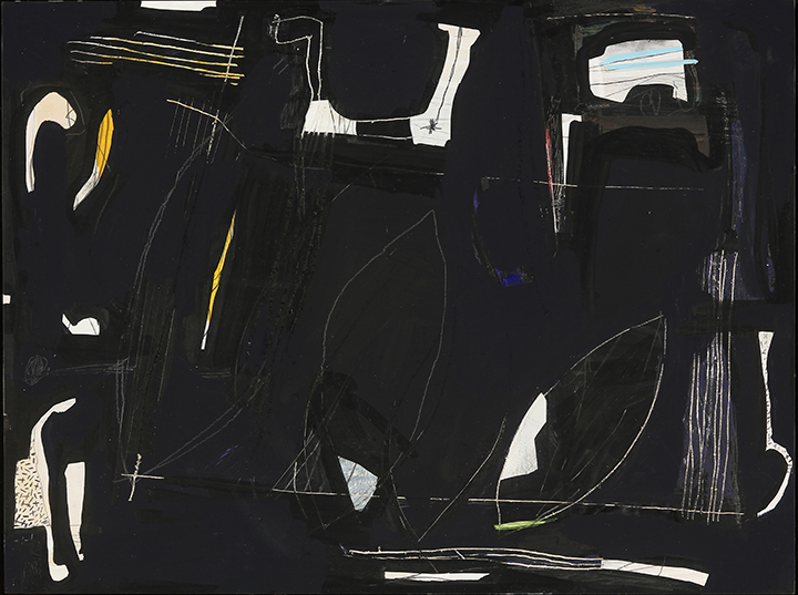Acrylic paint, vinyl paint, pencil, oil stick on plywood panel